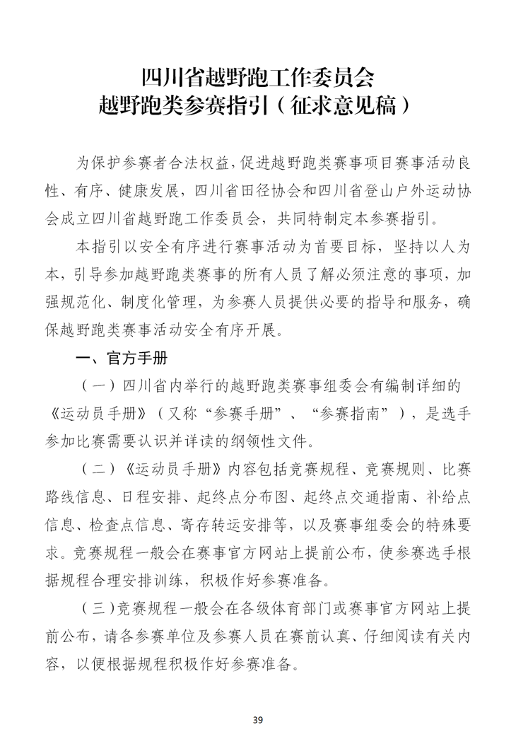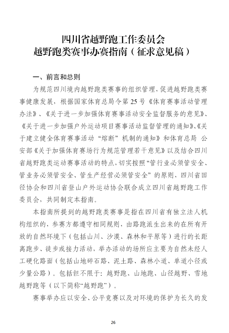 越野跑類參賽指引征求意見(jiàn)稿